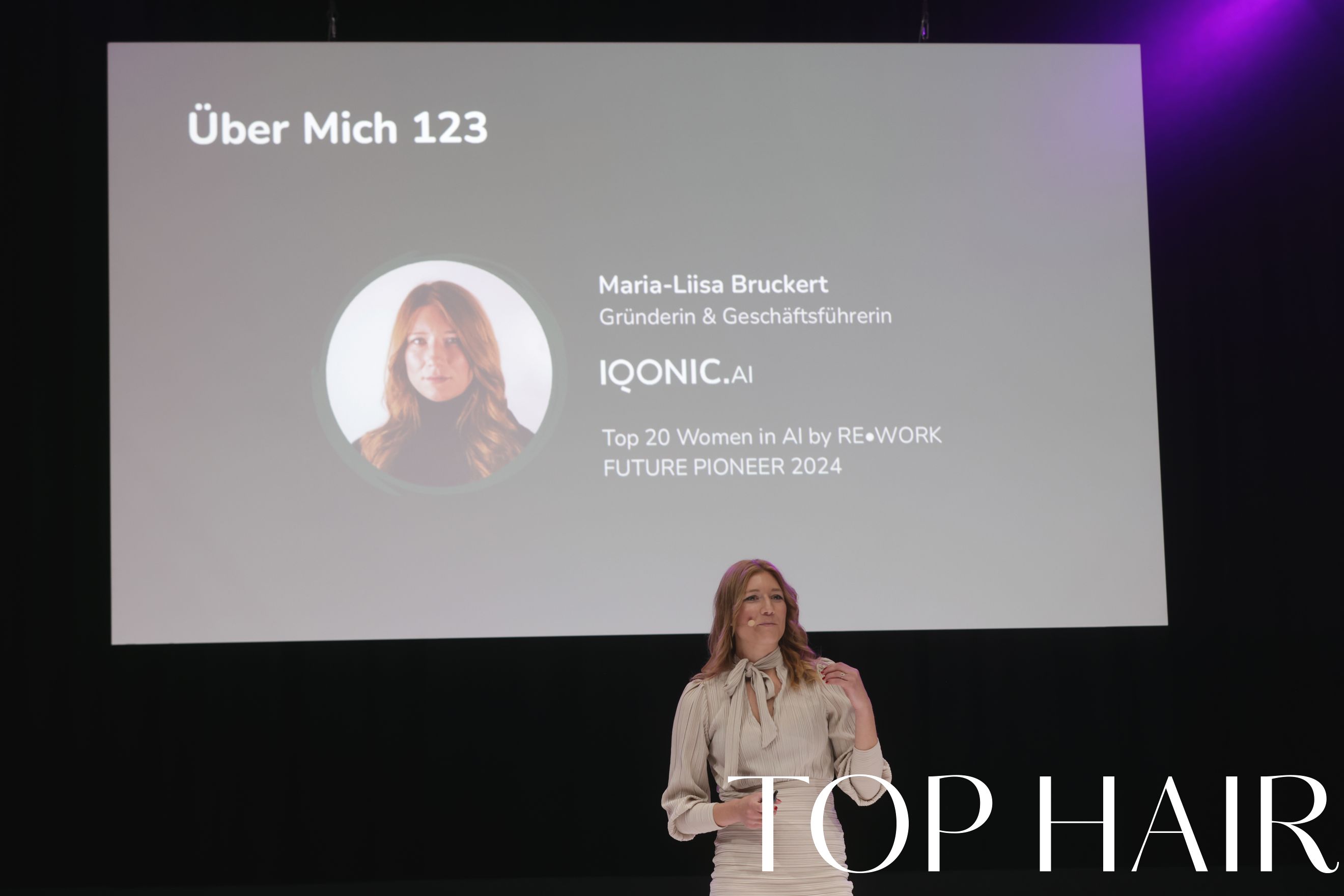 Künstliche Intelligenz hat das Potenzial, sowohl das Handwerk als auch die Beratung im Salon auf das nächste Level zu heben, erklärte Maria-Liisa Bruckert. Auf der TOP HAIR Workshop Stage zeigte die Unternehmerin, wie KI-gestützte Tools – wie IQONIC.AI – eingesetzt werden können.